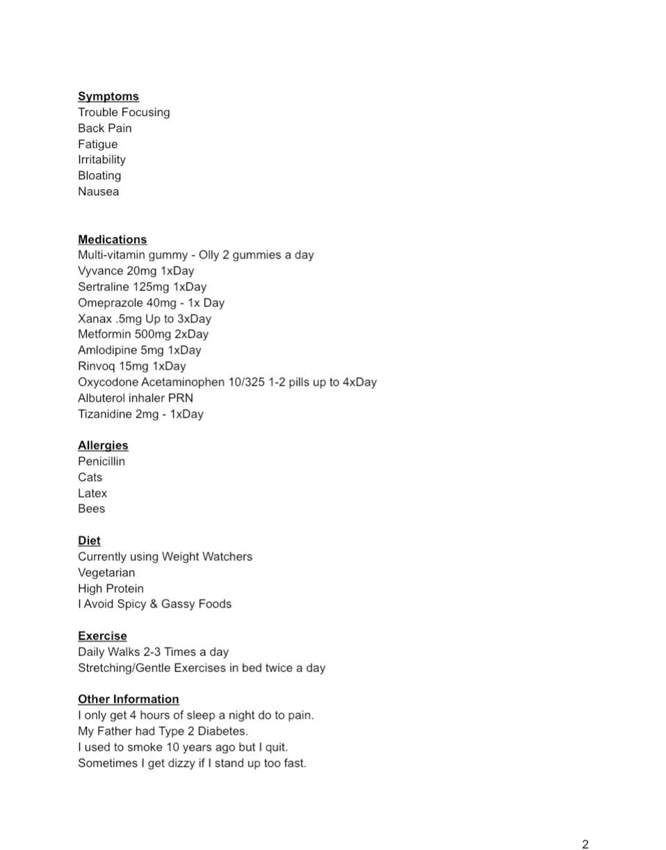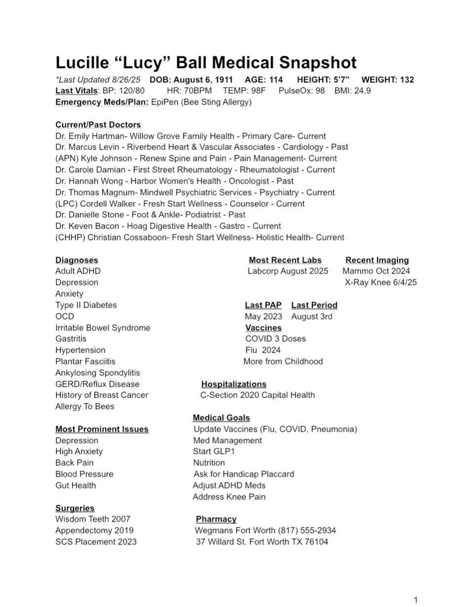 Our Medical Snapshot Services give you an easy-to-understand summary of your health history and current wellness status. Instead of juggling stacks of papers or forgetting important details, you’ll have everything neatly organized in one place ready to share with doctors, specialists, or caregivers.